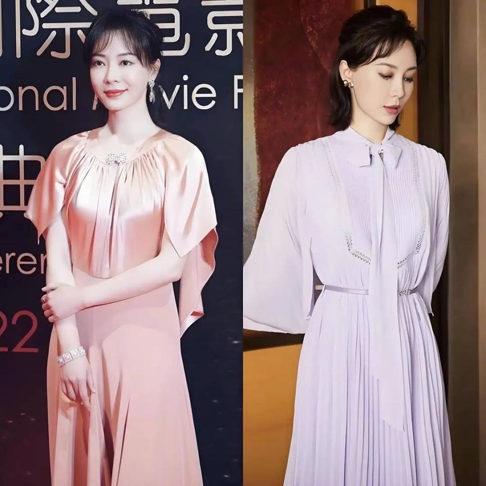 咱们还可以选择一件衣服搞定全身,比如下面这一件浅紫色的连衣裙,穿在身上之后就能让你变得优雅得体,再加上一款小腰带就能提升腰线,勒出你的小蛮腰,再加上精致的妆容和一款俏皮的发型,就能像陈数一样显得年轻十岁都不止。