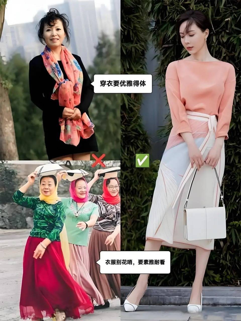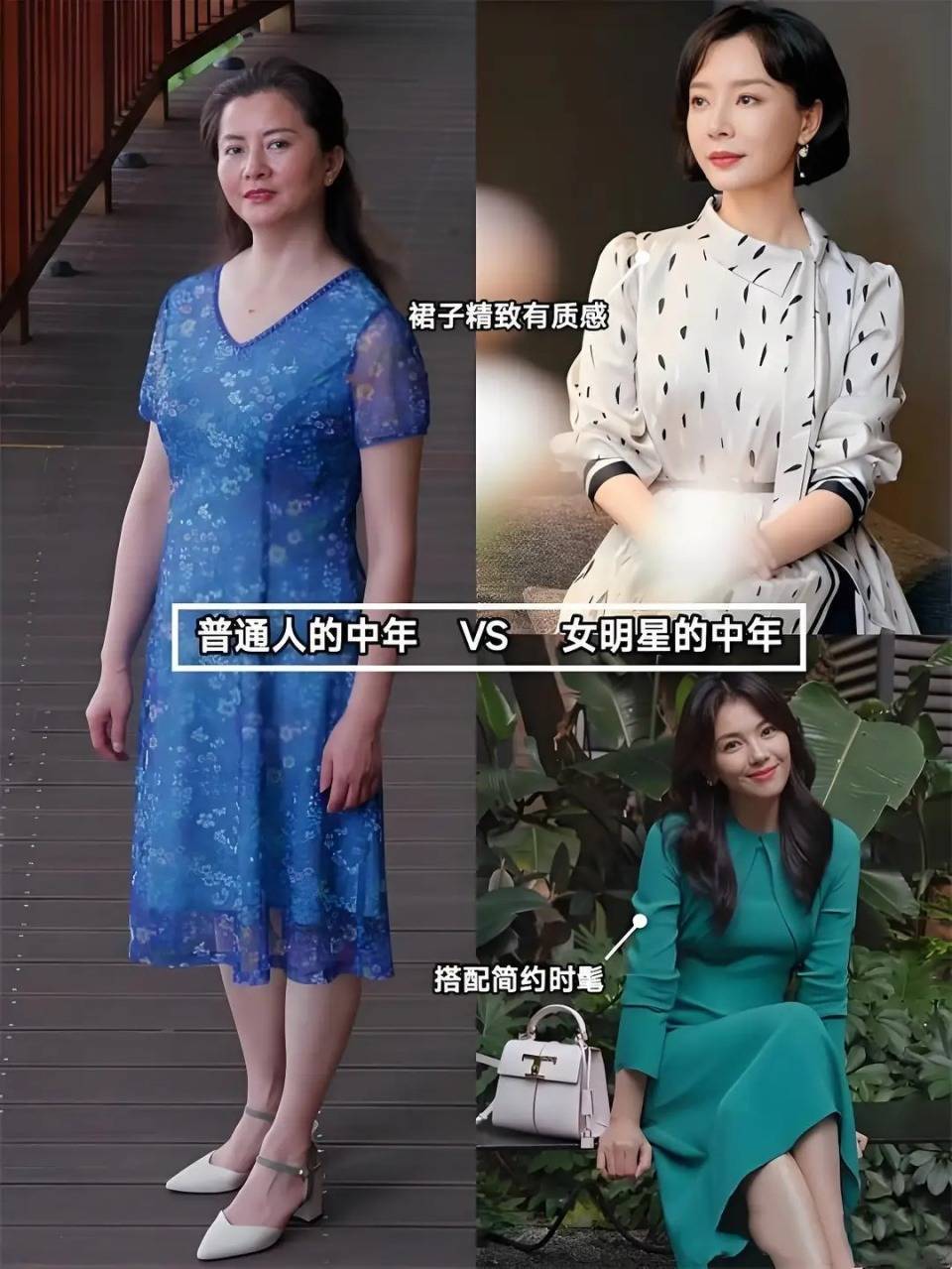 岁月是真的败美人,能扛住岁月的少之又少,人到中年很容易发福发胖,你的下颌线消失,你小蛮腰也不复存在,这时候如果再不懂得如何穿衣打扮,那么就很容易变得土气廉价,首先要注意大妈装千万不要穿。